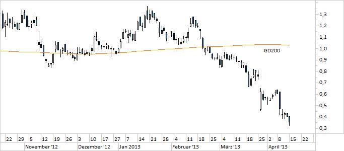 (Prime Quants) – Über diese Pressemitteilung von Centrosolar muss auch ein alter Börsenhase zweimal lesen, um genau zu verstehen, was da demnächst beim Solarunternehmen ansteht. Für den 22. Mai 2013 ist eine außerordentliche Hauptversammlung angesetzt, in der einige Kapitalmaßnahmen beschlossen werden sollen. Unterm Strich lässt sich attestieren, dass die Maßnahmen massiv werden. Im Handel geht es der Aktie am Montag relativ schlecht. Sie kommt mit 14 Prozent Kursverlust unter die Räder und wird aktuell bei 36 Cent gehandelt. Die anstehende Hauptversammlung hilft da nicht unbedingt als positive Meldung.